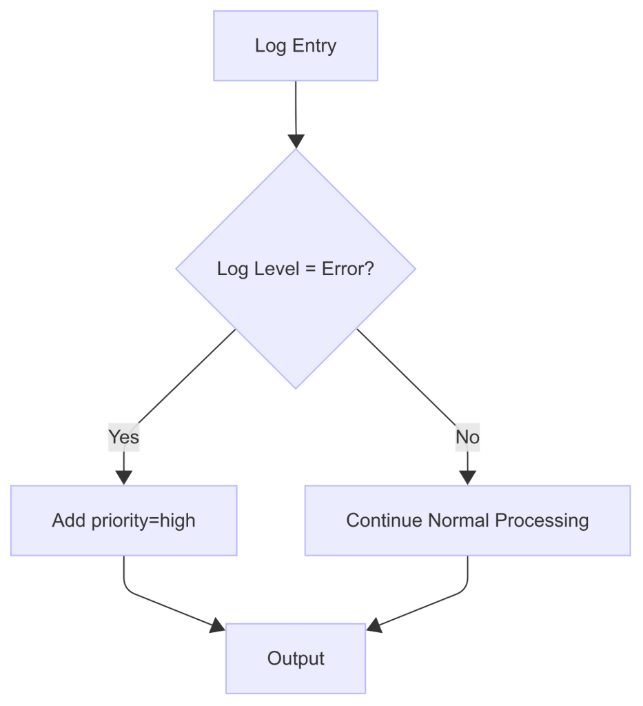 Objective: Automatically tag error-level logs with priority=high to enable special handling downstream.