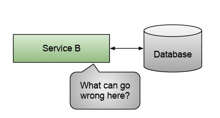 Our application needs to store or read state from persistent storage; quite a common requirement, right? You need data to do some calculations, then store the results somewhere so they don’t get lost if your application goes down. In our example, figure 3.6, Service B needed to connect to a database or persistent storage to read and write data.