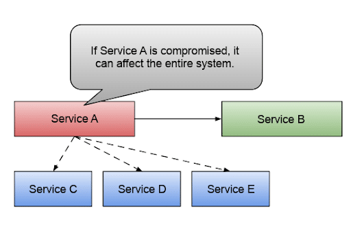 When infrastructure components (like database versions) change, each connected service may need dependency and configuration updates, forcing coordination between application, platform, and operations teams. This coordination becomes a major blocker to delivery speed and can increase the risk of downtime.